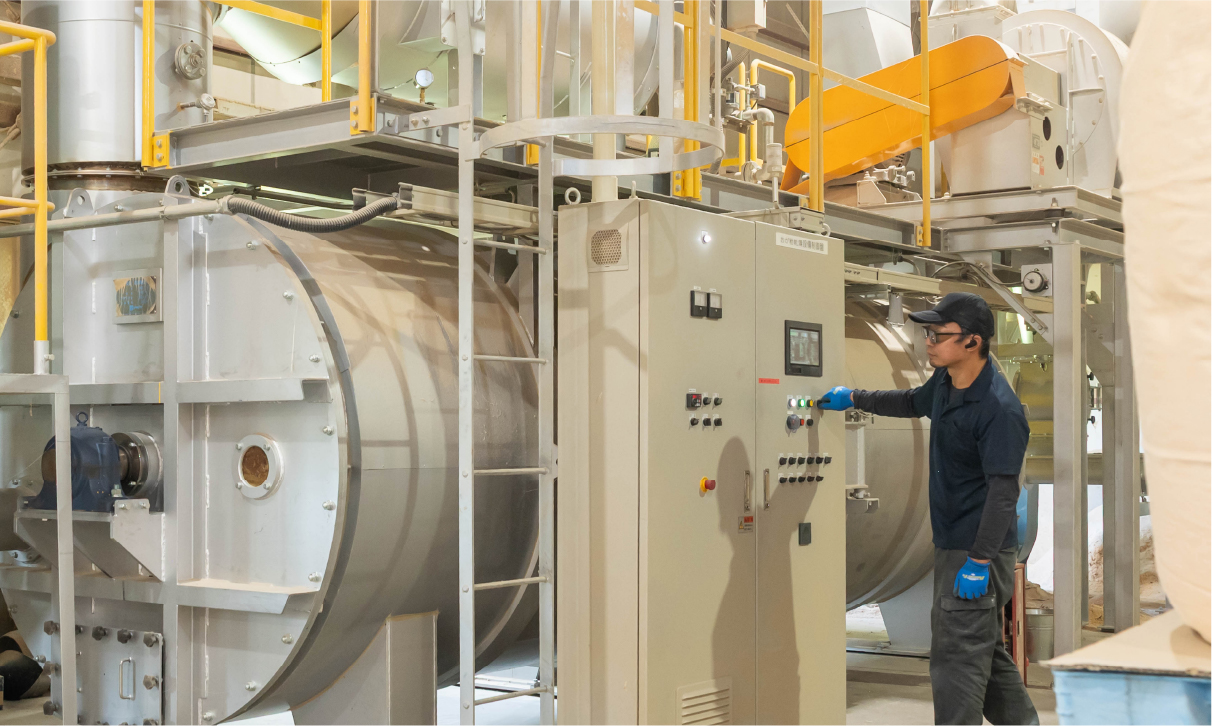 - 堀尾康之です。勤続5年目です。木粉加工工程で作業しています。